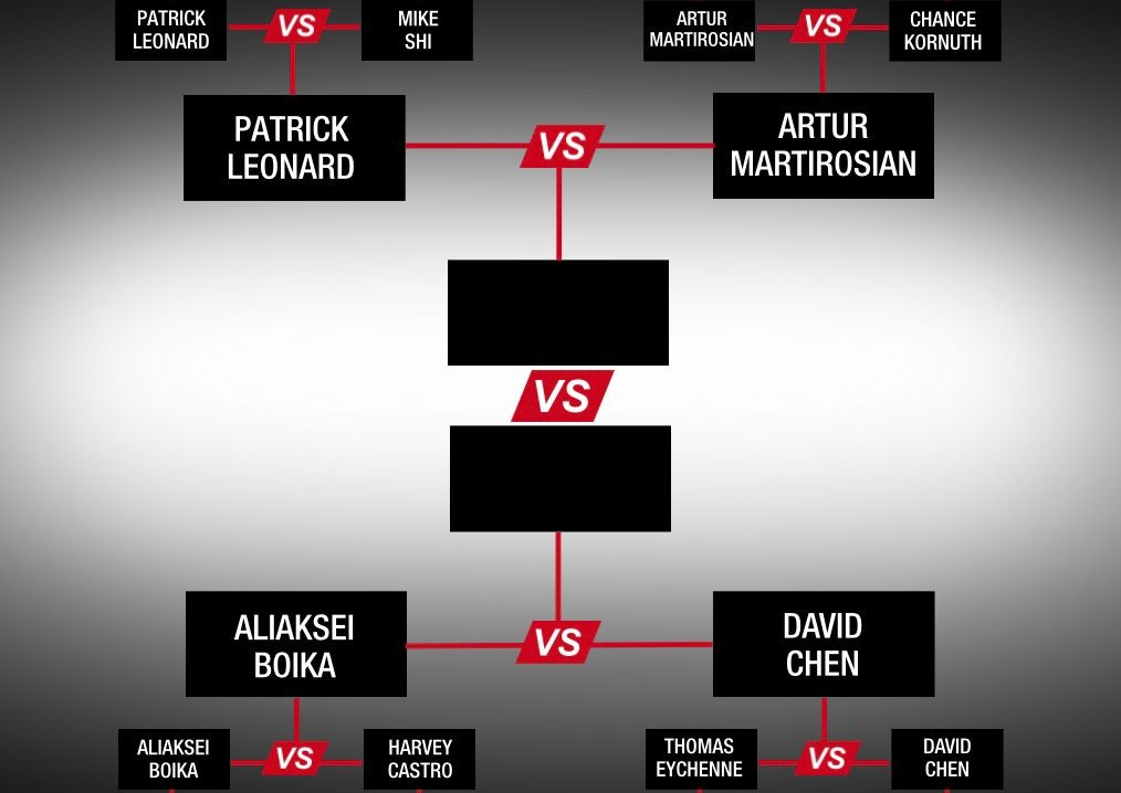 Semifinálové dvojice tvoří Patrick Leonard vs. David Chen a Artur Martirosian vs. Thomas Eychenne. Vítězové těchto heads-up duelů se pak ve finále poperou o prestižní zlatý náramek a hlavní podíl z prizepoolu.