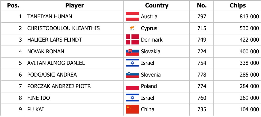 Pátek přinesl dva flighty Main Eventu Masters, které společně zaregistrovaly 361 entries, díky čemuž se do druhého hracího dne probojovalo 36 potenciálních šampionů. Nechyběly ani Chipleader Bonusy ve výši 5.200 €, které si rozdělilo 6 hráčů.