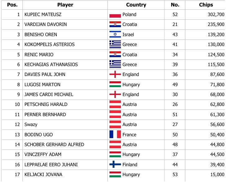 Včera byl na programu i druhý úvodní hrací den PLO Masters, který během devíti levelů zaregistroval 33 entries a z nich se do dnešního finálového dne probojovalo 17 hráčů. Do naplnění 20.000 € garance stále chybí 8.000 €, ale registrace je otevřená ještě první tři levely finálového dne. Ten startuje v 15:00, ve kterém poznáme šampiona této krásné čtyřkaretní hry.