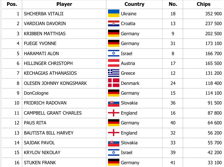 Během Masters nesmí chybět ani omahová verze turnaje. PLO Masters Main Event odstartoval včera prvním dnem, do kterého naskočilo 42 účastníků. V boji o 20.000€ bylo během prvního dne PLO Masters potřeba nashromáždit co nejvíce žetonů během deseti levelů. Na pozici chipleadera se usadil Vitalii Shcherba, který má letošní Banco Casino Masters rozehrané skvěle.