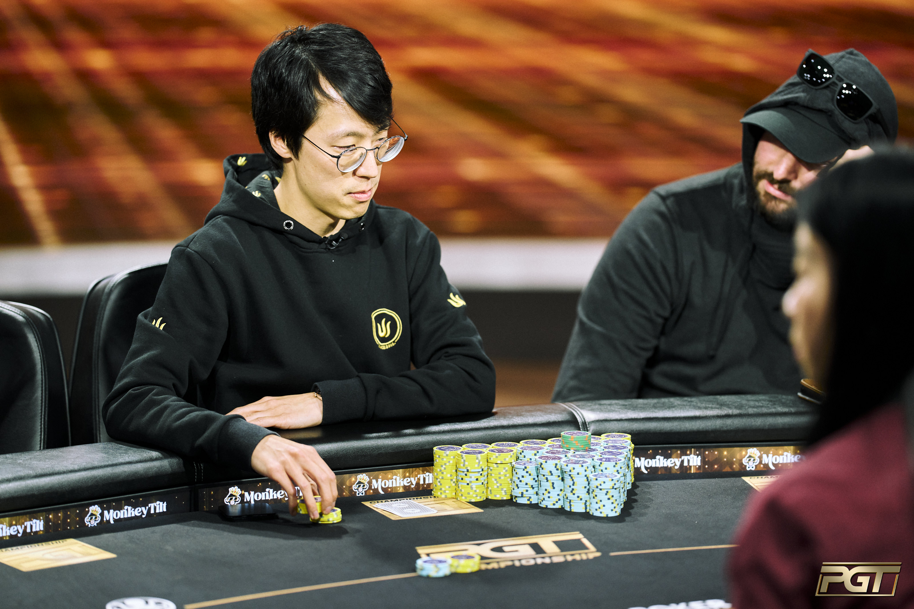 The prestigious PGT $1,000,000 Championship has completed its first day of play. A total of 54 players entered the tournament – the elite top forty from the PGT rankings, supplemented by 14 Dream Seat ticket holders. After Day 1, the final table is set with the last 7 players vying for the top prize of $500,000.