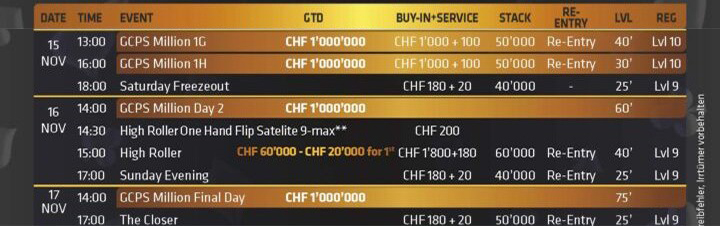The GCPS Million is reaching its decisive phase. The last two flights, 1G at 1:00 PM and 1H at 6:00 PM, are on today's schedule. These starting days will definitively close the opportunity to join the battle for a share of the million guarantee. If you haven't yet jumped into the biggest event of the current series at Grand Casino Liechtenstein, Saturday is your final chance.