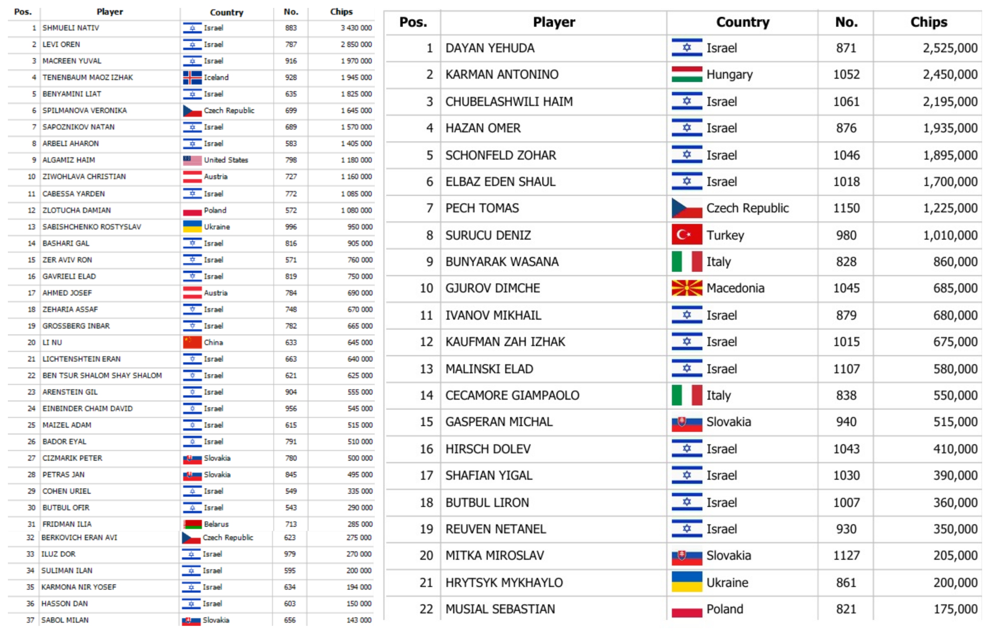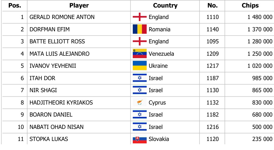 Banco Bratislava is buzzing with the premiere of the Israeli Federation Cup, which has drawn a huge crowd. Yesterday was a prime example – the trio of opening days accumulated a total of 686 entries, definitively breaking the quarter-million guarantee. Among the hopeful 70 players advancing to Day 2, Shmueli Nativ stood out by exceeding 3 million in chips.