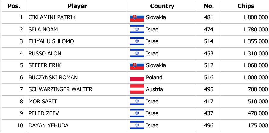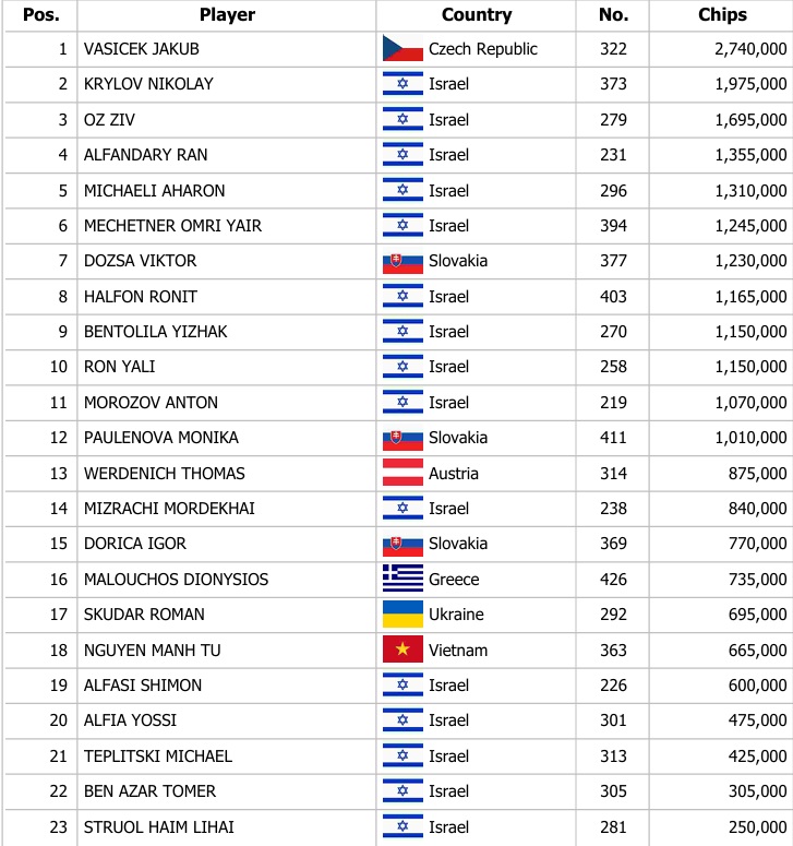 Israeli Federation Cup Main Event €250,000 GTD – 1C: