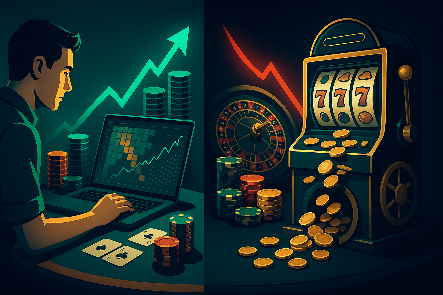 Let’s use blackjack as the most “skillful” casino example. A player using perfect basic strategy reduces the house edge to roughly 0.5%. That means for every $1,000 wagered, the expected loss is $5. A solid poker player with a 10% ROI could expect $100 in profit from the same bankroll volume in tournaments. The gap is clear.