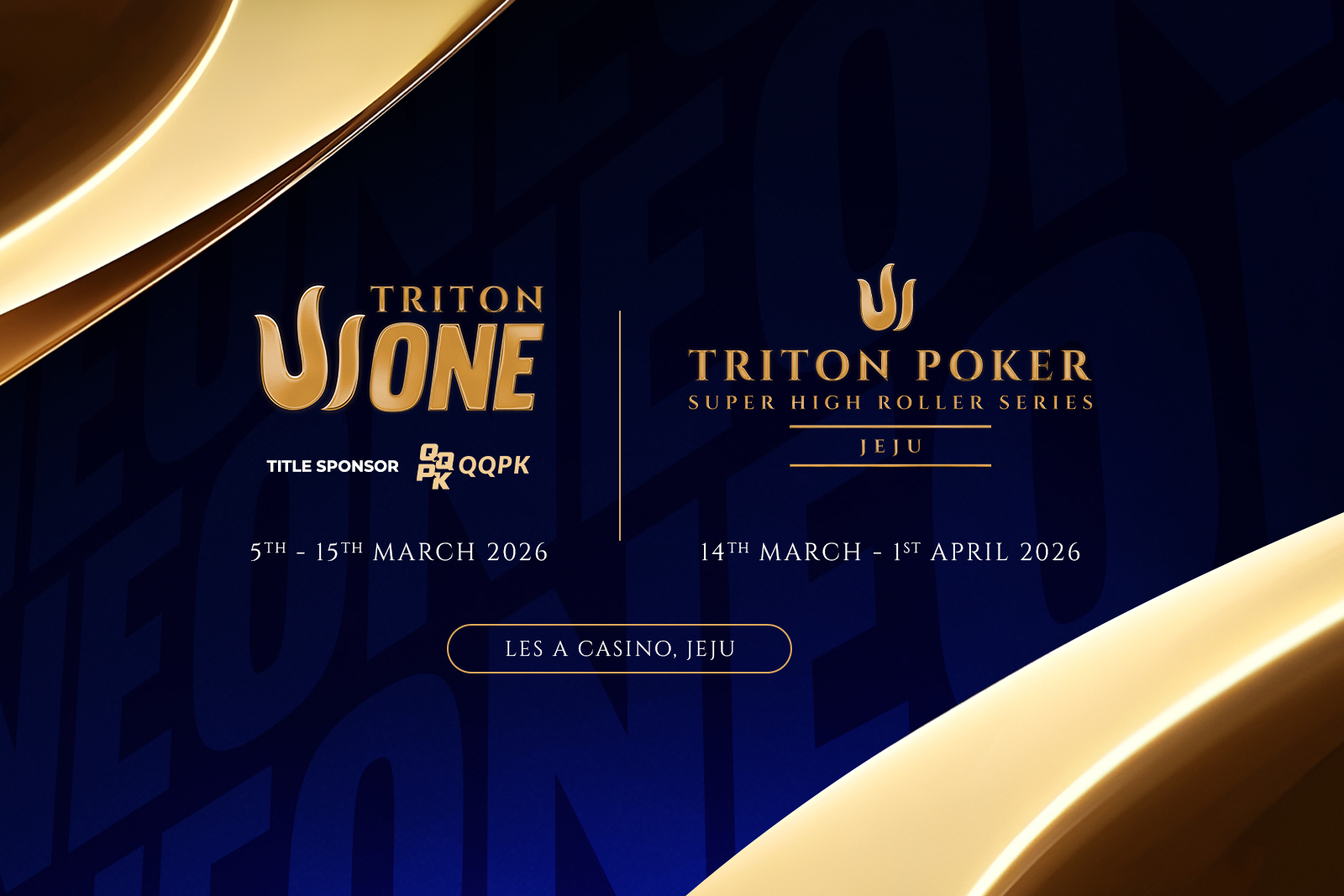 - Jeju, South Korea (March 2026) – the opening stop of the new season, featuring the mid-stakes Triton ONE festival and the classic Triton Super High Roller Series