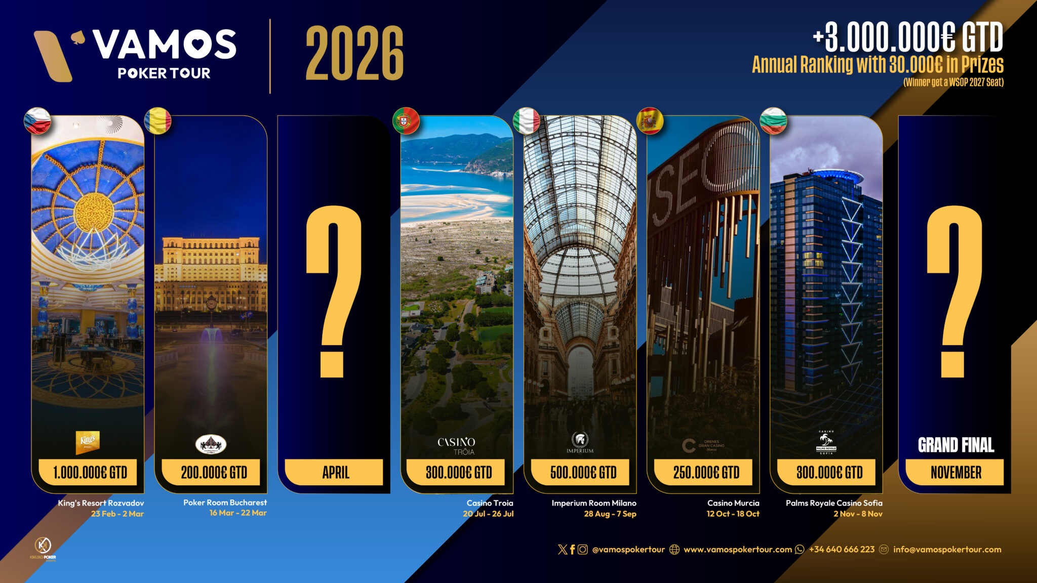 Over the past few years, the Vamos Poker Tour has built a reputation as a series that travels across Europe, focusing on accessible tournaments, a friendly atmosphere, and an interesting program. At its core, it operates as a low to mid buy-in circuit where main events regularly hover around the €350 buy-in, catering to both recreational players and regular grinders.