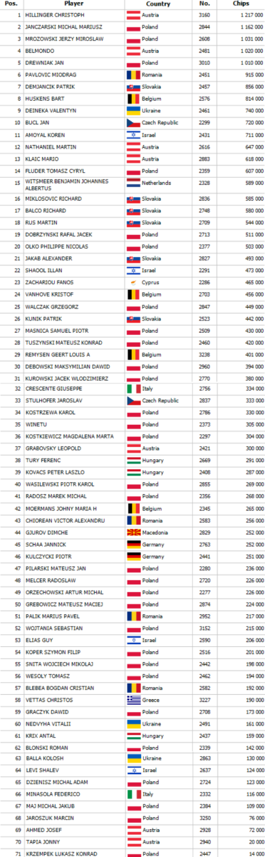 Slovakia's largest Mystery Bounty Main Event – that's the well-deserved title for this year's Winter Polish Poker Cup Main Event. With 3,839 entries, the prize pool soared to a whopping €489,472, which will be split between prize money and bounty rewards. The largest mystery bounty prize is set at €25,000, and there’s a strong chance someone will claim it today during Day 2.