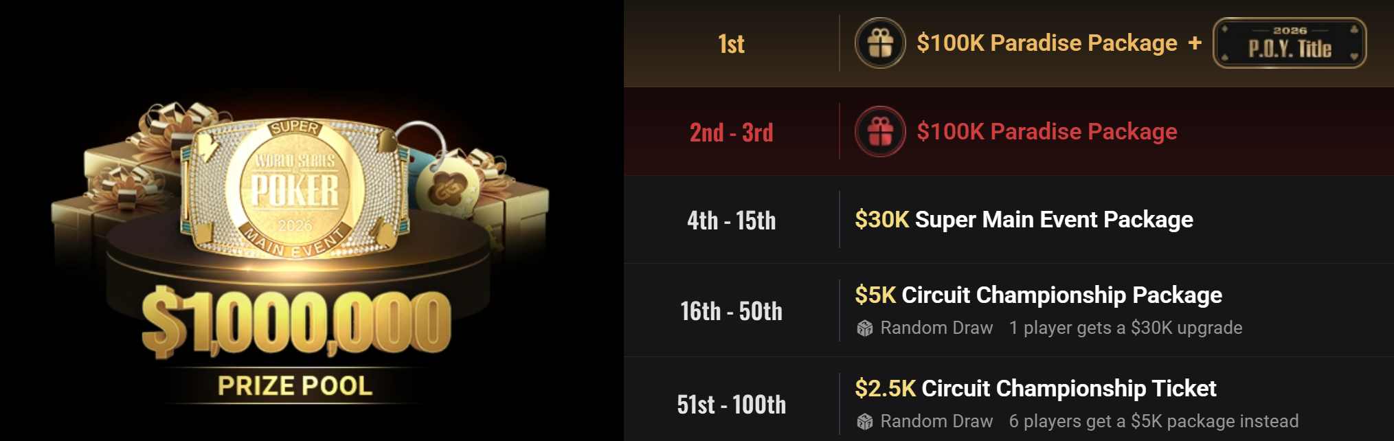 The new WSOP POY series will be supercharged with a total prize pool for the Player of the Year leaderboard amounting to $1,000,000. The winner will receive an enhanced package to WSOP Paradise valued at $100,000. Rewards in the form of packages and entries await other top finishers as well, with WSOP announcing prizes for the top 100 players at the end of the season.