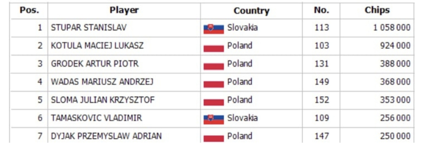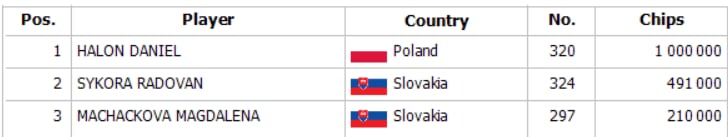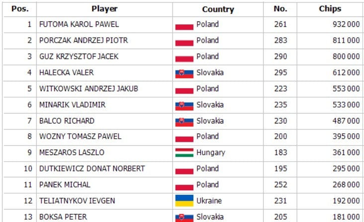 A mai döntő napra, amely 16:00 órakor indul, eddig csak 34 játékos kvalifikálta magát. A Banco Casino Košice bejelentette, hogy a győztest legalább 13.000€ várja, amire a döntősök már mindannyian ácsingóznak.