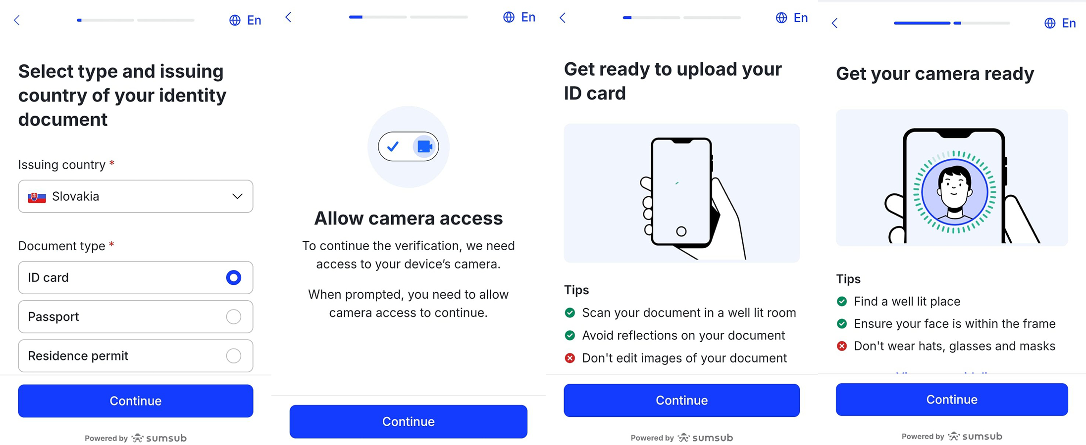 A következő lépés az identitás verifikációja. Ezt a legegyszerűbb mobilon elvégezni QR-kód beolvasásával, majd lefotózod a személyazonosító okmányt (személyi, útlevél vagy tartózkodási engedély) és egy rövid arcellenőrzést végzel. Az egész folyamat gyors és érthető, a felület modern és lendületes, és a teszt során nem tapasztaltunk technikai problémákat.