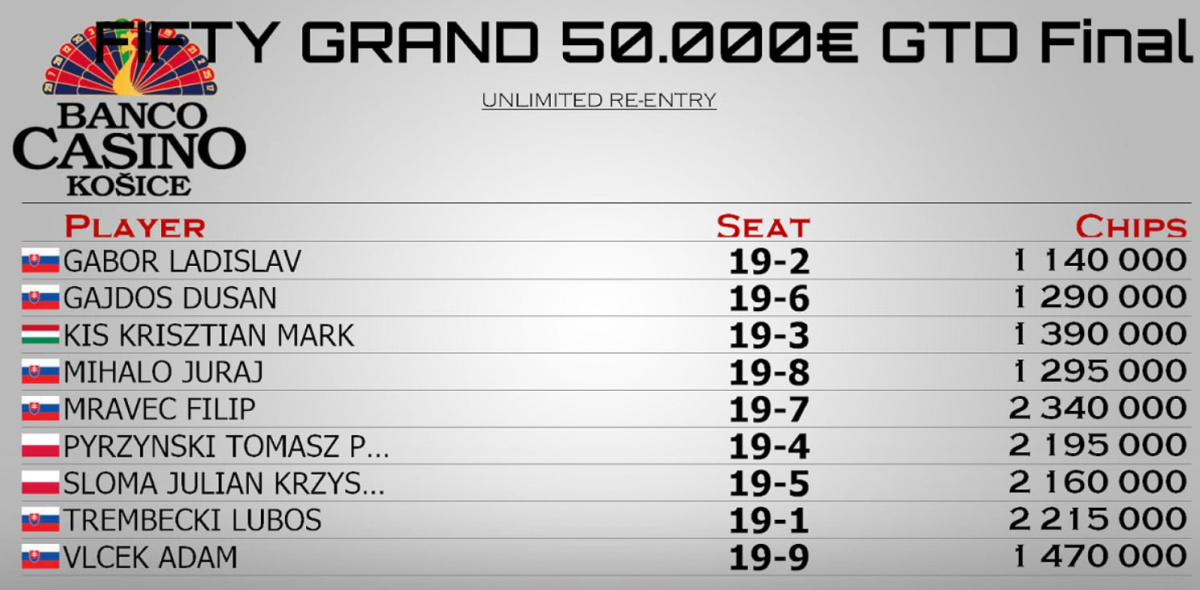 Fifty Grand konajúci sa v Banco Casino Košice je na konci. Úvodné hracie dni vyprodukovali celkom 310 entries, ktoré nestačili na pokorenia 50.000€ garancie, do ktorej muselo kasíno prispieť nemalou sumou. Do finále sa tak prebojovalo 31 ašpirantov na titul, ktorí si brúsili zuby na celkové víťazstvo a s ním spojenú odmenu 10.100€.