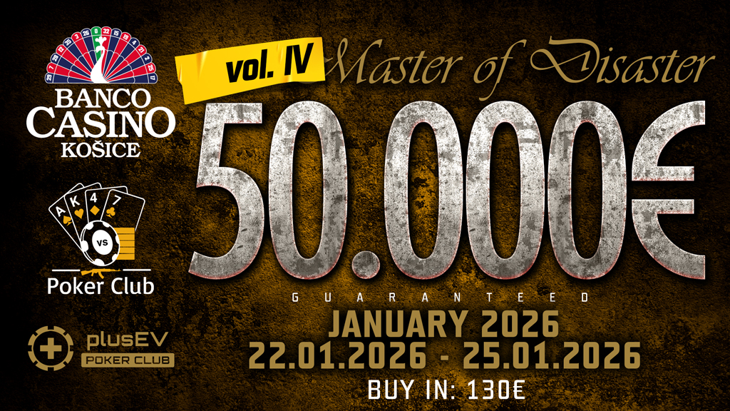 Už po štvrtý krát sa vo východnej metropole Slovenska odohrá event Master of Disaster, ktorý aj tentokrát prinesie Main Event s garanciou až 50.000€. V dátumoch od 22. januára do 25. januára budú prebiehať úvodné hracie dni, ktoré posunú do finále vždy 10% hráčov z počtu entries. Samotné finále je na programe v nedeľu 25. januára, kde sa budú rozdávať finančné odmeny.