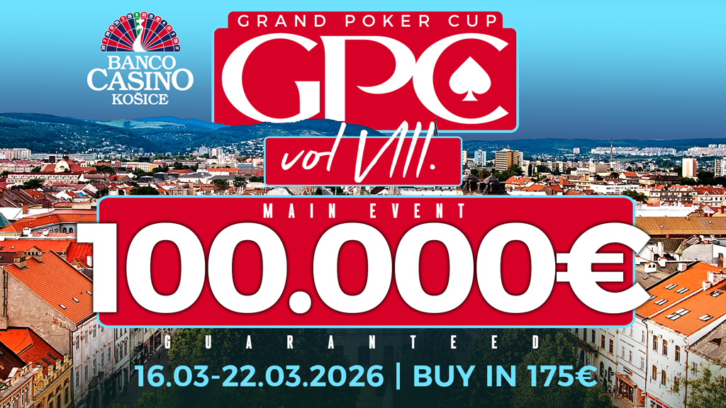 Obľúbená pokrová séria, ktorá sa v Banco Casino Košice bude konať po ôsmy krát prinesie opäť 100.000€ garanciu, o ktorú sa pobijú tí najlepší. Do kalendára si preto zapíšte dátum 16.3. - 22.3.2026 a nenechajte si tento pokrový sviatok ujsť.