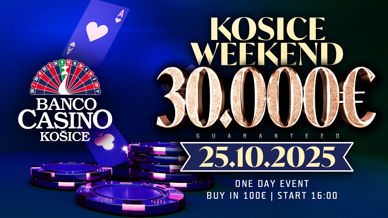 V októbrovom programe nebude chýbať ani obľúbený historický turnaj Košice Weekend, ktorý tento mesiac prinesie 30.000€ garanciu za 100€ buy-in. Táto skvelá jednodňovka sa odohrá 25. októbra a vy by ste si príležitosť vyhrať v tomto turnaji nemali nechať ujsť.