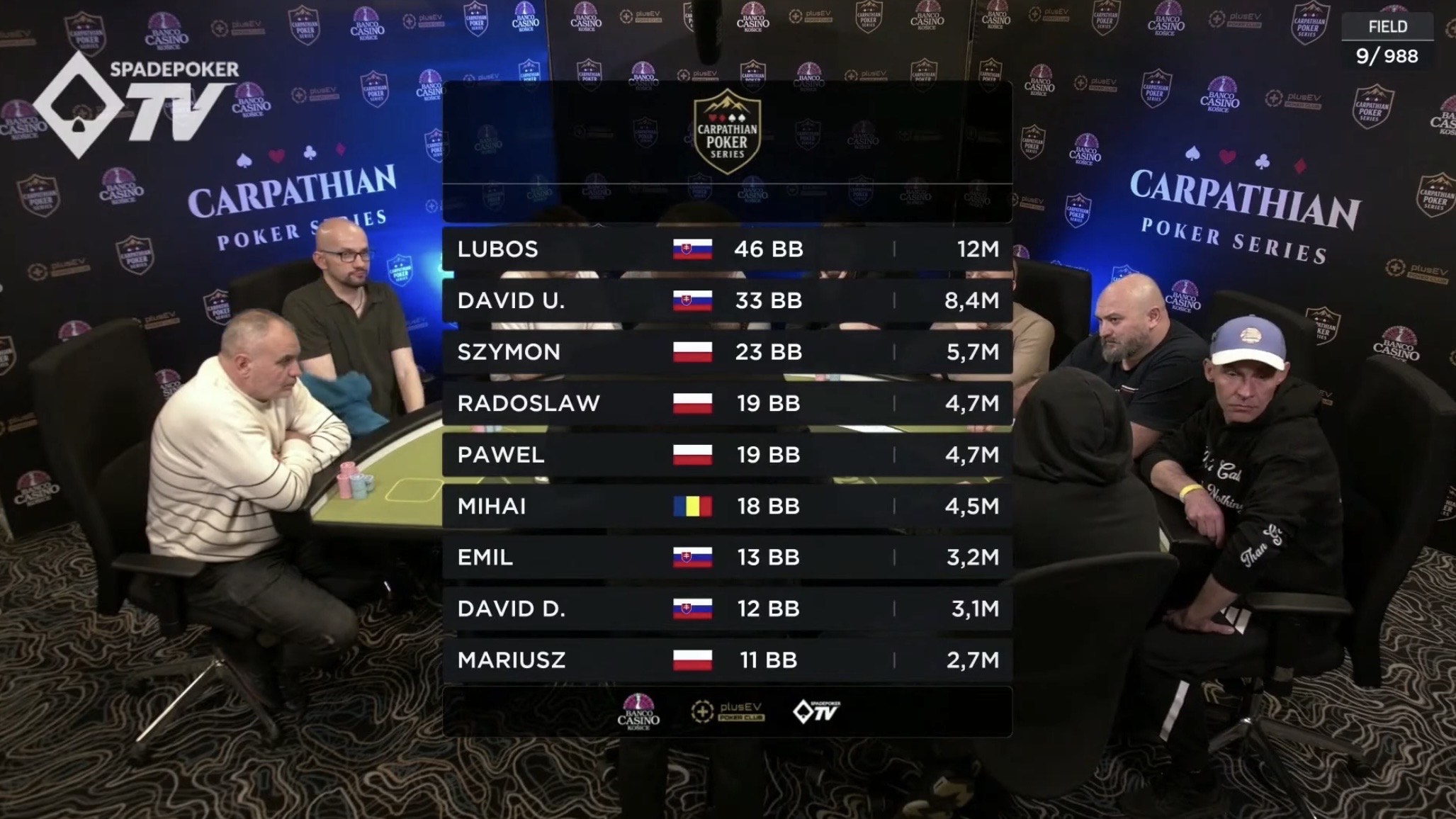 Ľuboš "Limper" Trembeckí sa napokon musel uspokojiť "len" s piatym miestom za 6.026€, pretože ho nepodržali šestky v 3-way alline. Za ním sa po výplatu vybral aj Wegierak a v hre zostala posledná trojica hráčov - Klekot, Wzorek a domáci Urban. Napokon to bol práve domáci reprezentant, ktorý sa s turnajom rozlúčil na treťom mieste za 11.405€ a stal sa tak najlepším slovenským hráčom turnaja, za čo dostal trofej, tak ako aj ostatní najlepší hráči každej krajiny spod Karpát.