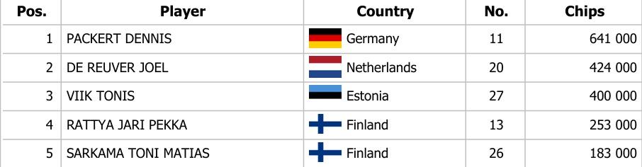 Rušno bolo aj za pokrovými stolmi, pretože odštartoval Main Event s buy-inom 550€, do ktorého získalo tiket 200 kvalifikantov. Včera sa do Main Eventu zaregistrovalo 38 hráčov, z ktorých ďalej postúpilo 12,5% hráčov. Sen o titule tak stále živí päť hráčov, ktorí si zabalili na konci večera svoje stacky.