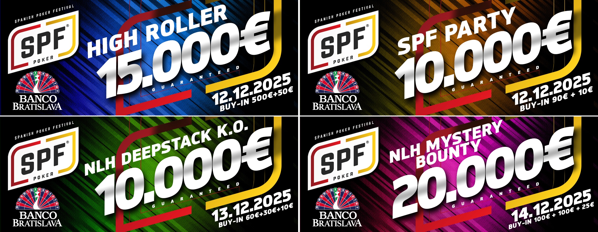 Tretie vydanie Spanish Poker Festivalu odštartovalo. Banco Bratislava sa premenilo na domov hráčov zo Španielska, ktorých by malo byť viac ako 200. Počas celého týždňa budú prebiehať rôzne turnaje, no najväčšiu pozornosť si odnesie Main Event s garanciou 150.000€. Kto sa stane šampiónom tentokrát?