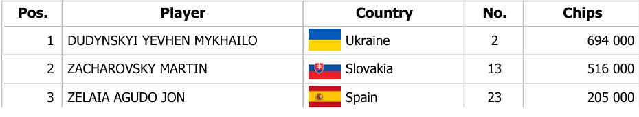 Včera sa odohral prvý úvodný hrací deň Main Eventu, do ktorého si našlo cestu len pár prvých nedočkavcov. Celkovo sa hráči postarali o 26 entries, ktoré znamenali postup pre trojicu hráčov. Tí si tak budú môcť dnes zabezpečiť bonus za prípadný dvojitý postup.