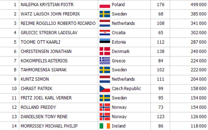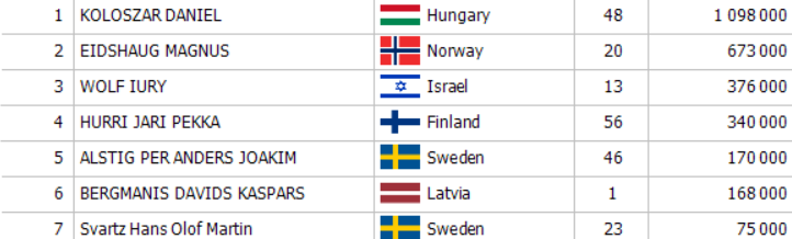Flight 1A priniesol celkovo 58 entries, ktoré znamenali postup pre sedem hráčov. Tí si zabezpečili miestenku v Day 2, ktorá zaručuje finančnú odmenu. Najväčší stack sa podarilo zabaliť maďarskému hráčovi Danielovi Koloszarovi, ktorý si zabalil 1.098.000 chipov.